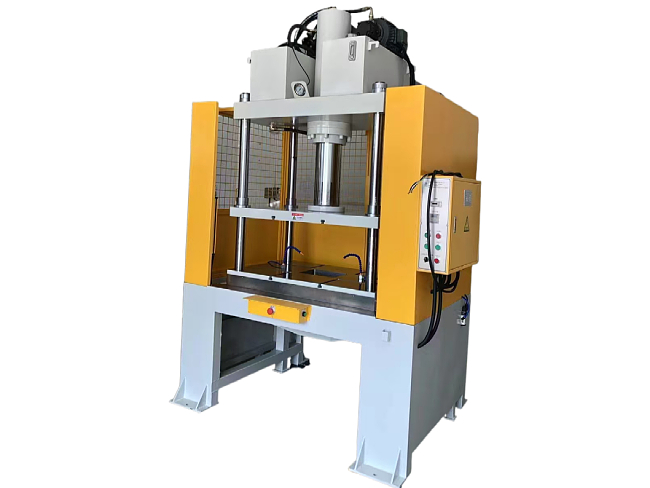 1. 結構設計科學 :通常采用四柱三板式結構,活動板(bǎn)與(yǔ)工作(zuò)麵平行精度高,四個精密導套確保(bǎo)下壓(yā)垂直精度,能有效保證衝邊的準確性和穩定性。